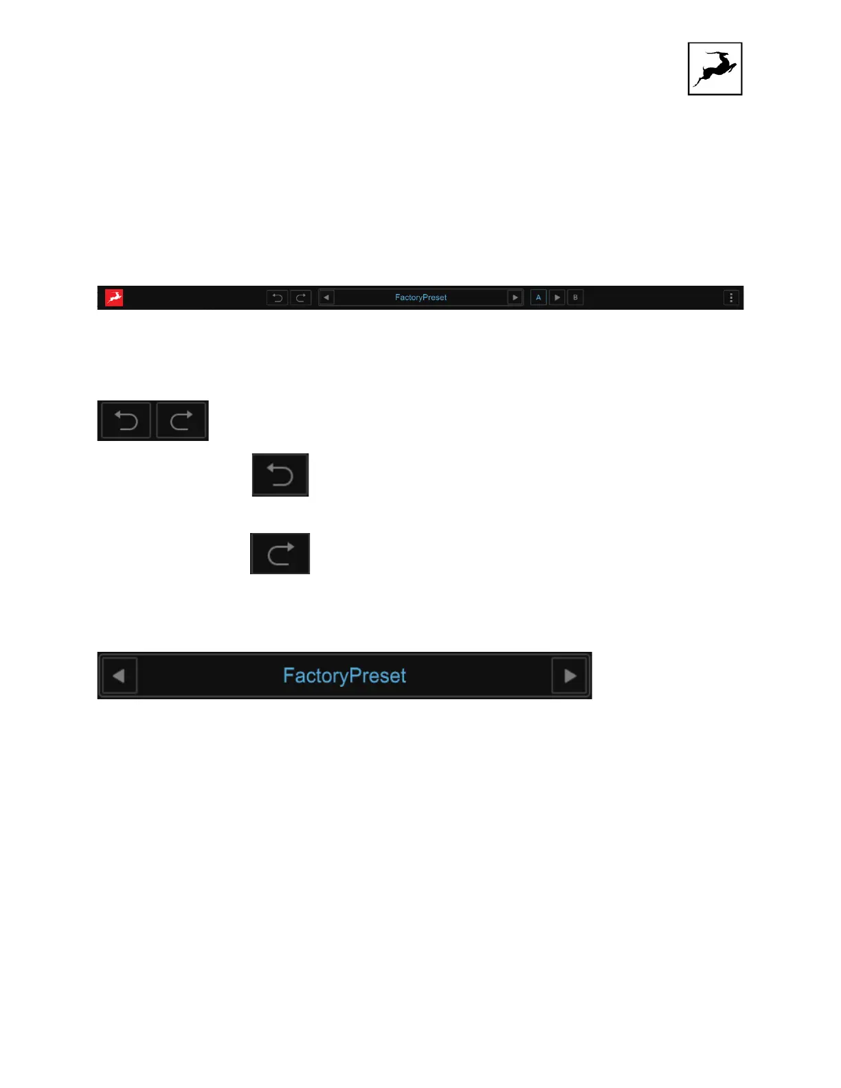 • Click on the Preset strip to access the menu and save and load, browse through preset files. On