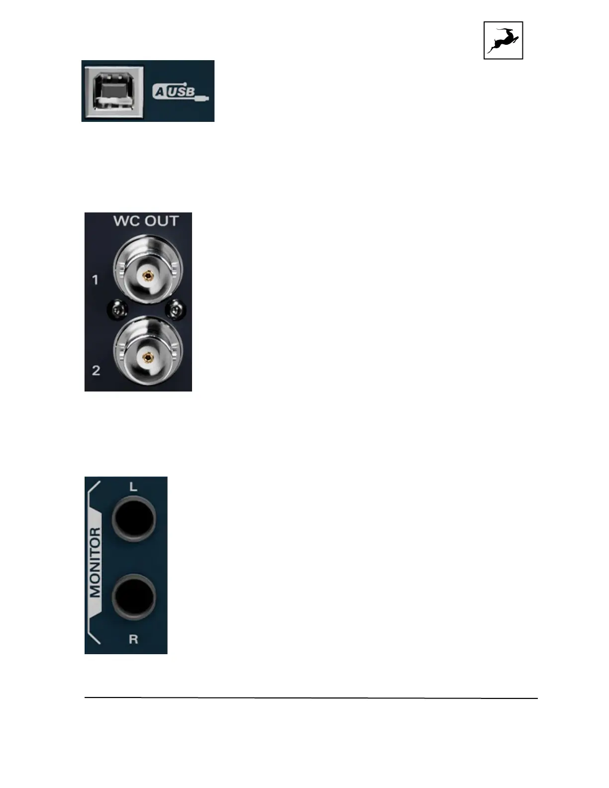 Left and Right monitor speaker outputs on signal-balanced 1/4-inch jacks.