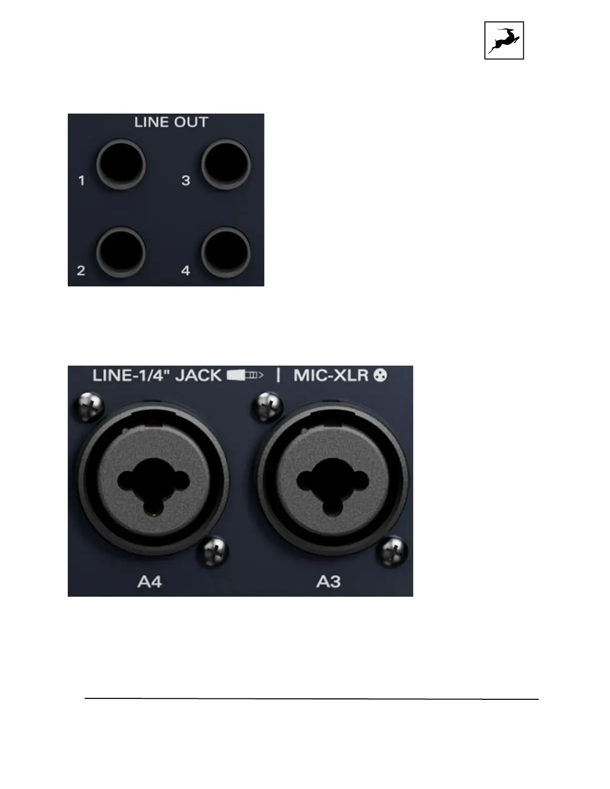Two mic/line inputs on combo XLR connectors. Labeled A3 and A4. Hi-Z is not available on