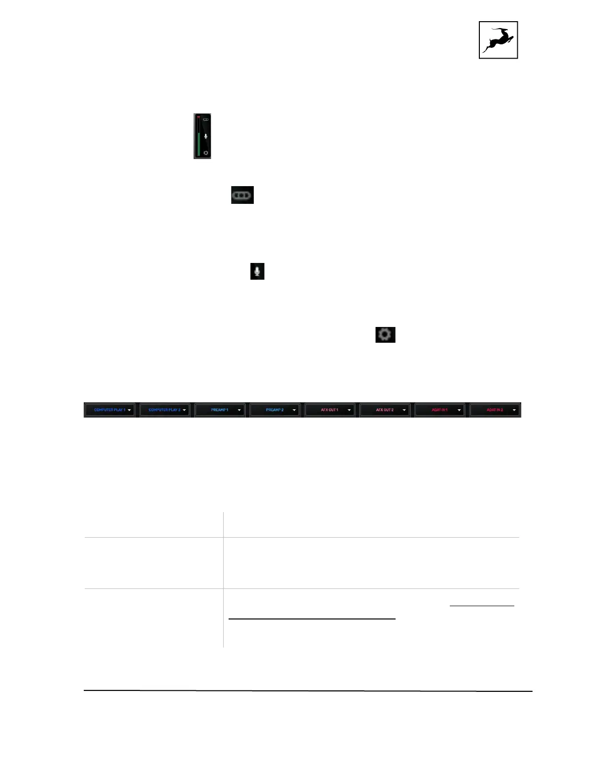 Click to switch inputs between mic, line, or Hi-Z (inputs A1 - A2).