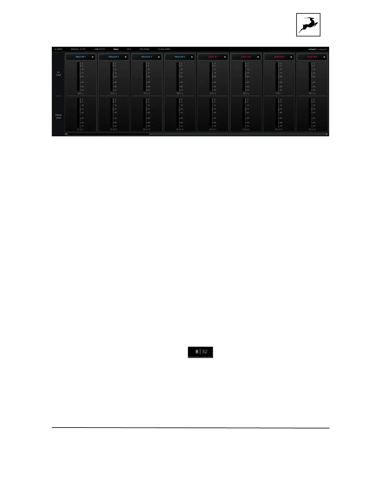 In the 32-channel mode all 32 channels are visible in the DAW section.