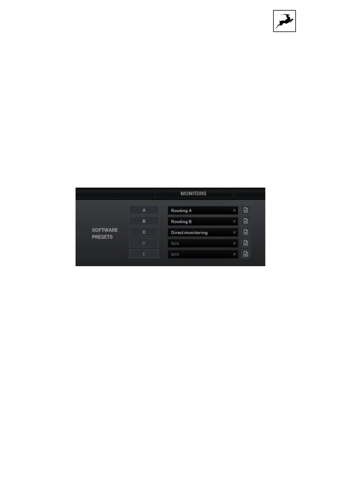 Project Session files can be loaded into the 5 quick recall Software Preset slots. Storing
