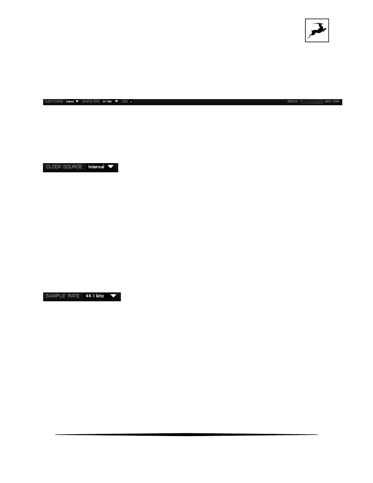 Click to choose the clock source (Internal, S/PDIF, ADAT) from the drop-down menu. The