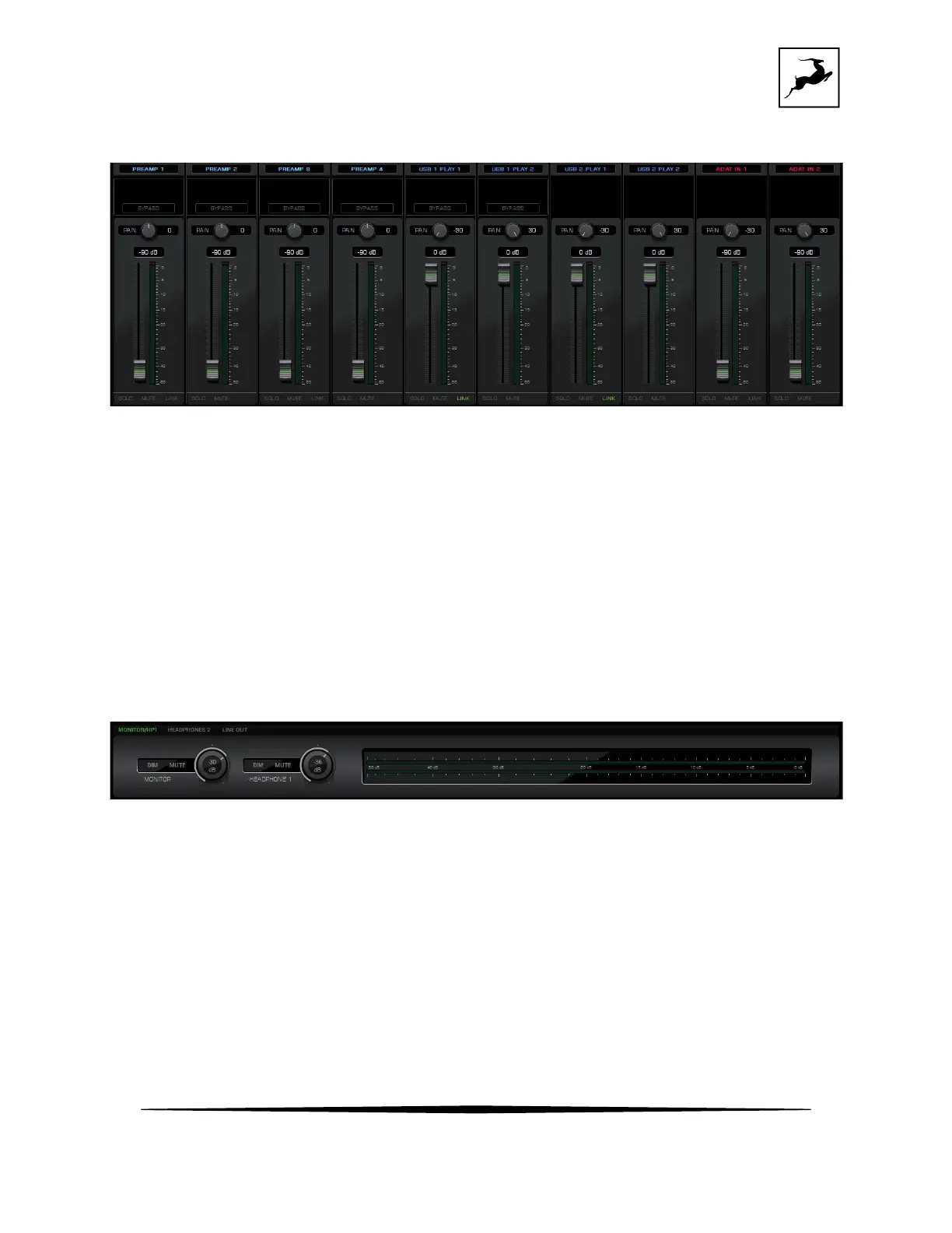 channel of the three 16-channel virtual mixers titled 'Monitor/HP1', 'Headphone 2', and 'Line