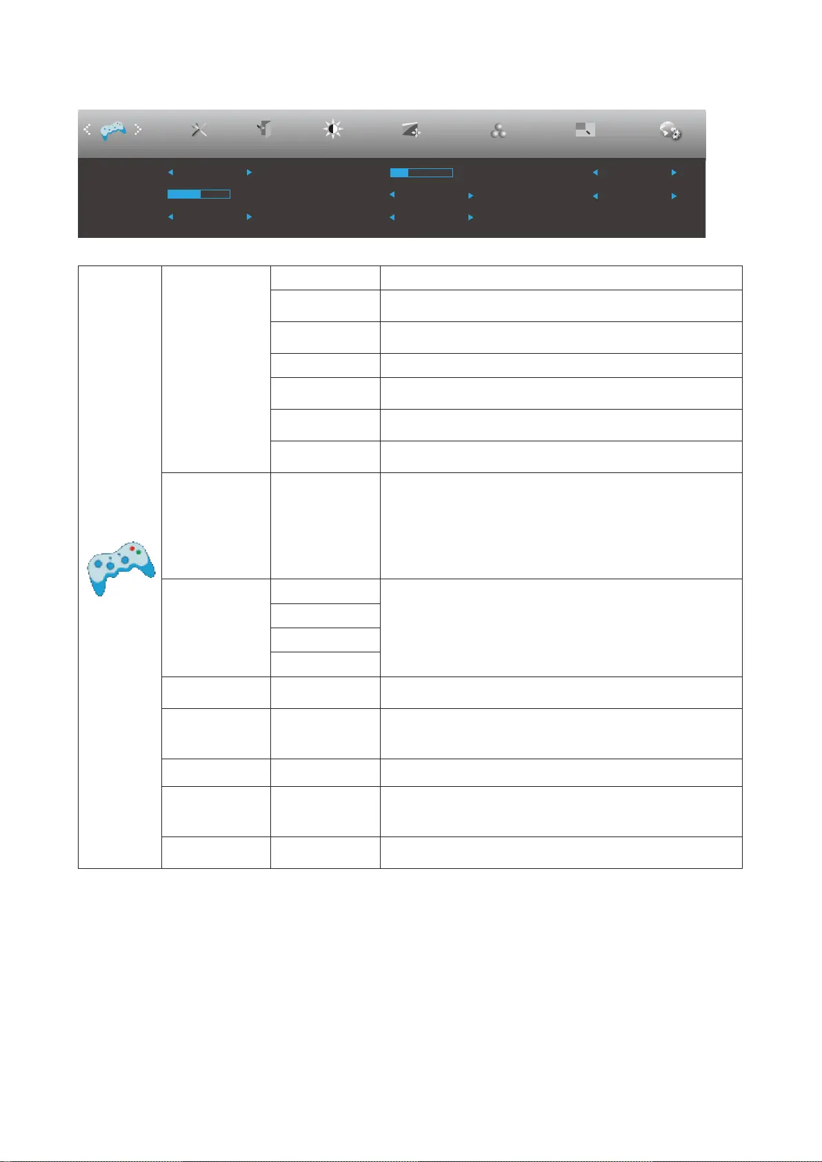 當“亮度”下的“HDR.Mode”設置為非關閉狀態時,“遊戲設定”下“遊戲模式”,“暗場控制”,“遊戲色調”,“低