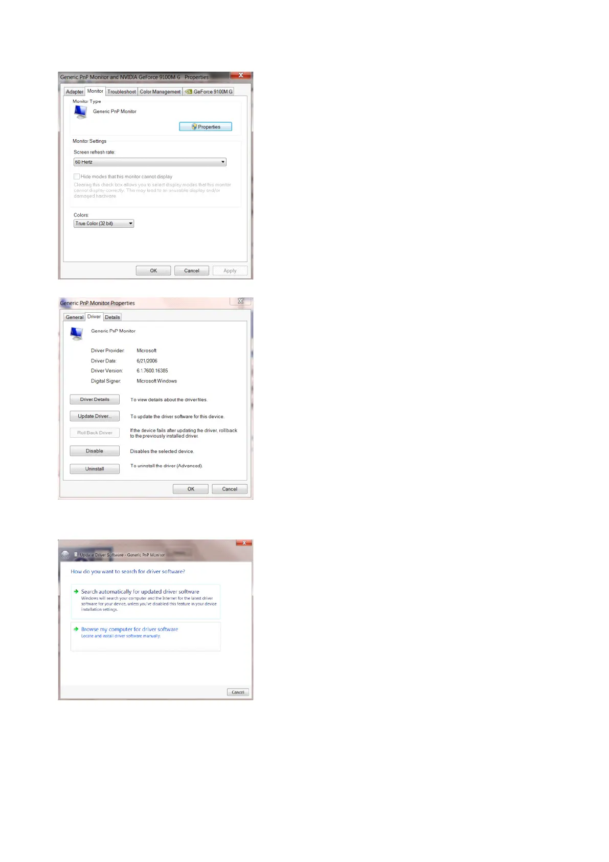 •Otevřete okno „Update Driver Software Generic PnP Monitor )Aktualizovat software ovladače obecného PnP monitoru(“,