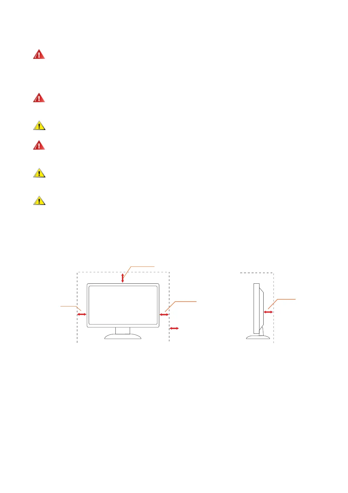 Leave some space around the monitor as shown below. Otherwise, air-circulation may be inadequate hence