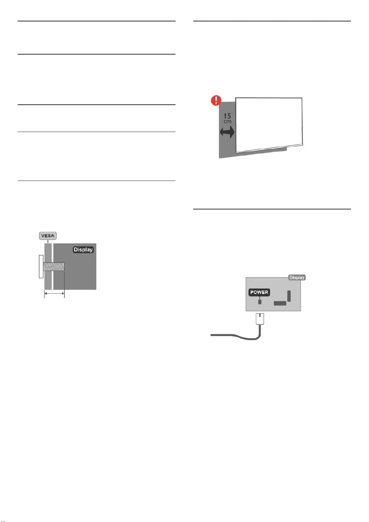 • 當進行壁掛時,顯示器的擺放位置應距離牆面達 15