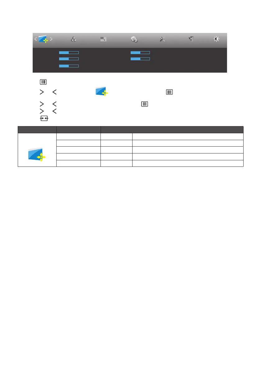 H.Position 0~100 Adjust the horizontal position of the picture.