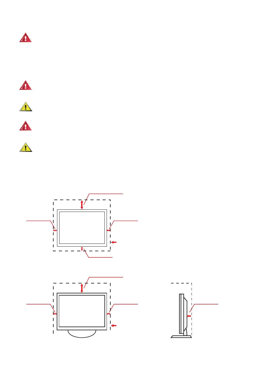 See below the recommended ventilation areas around the monitor when the monitor is installed