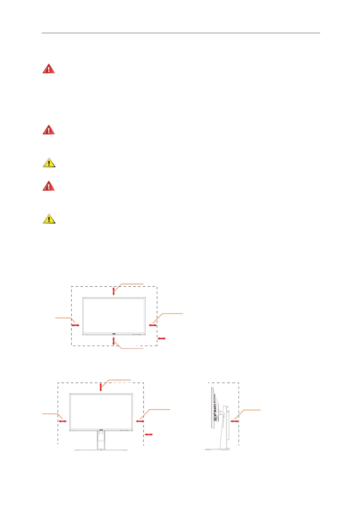 See below the recommended ventilation areas around the monitor when the monitor is installed on the wall or on