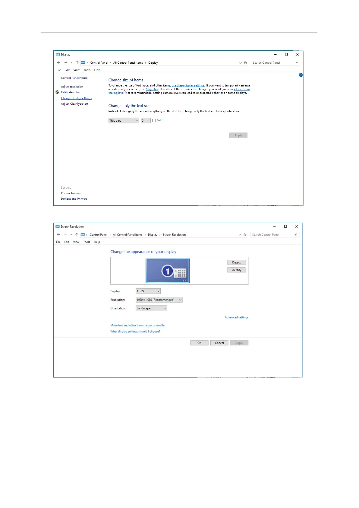 Klik op de knop "Change display settings (Beeldscherminstellingen wijzigen)".