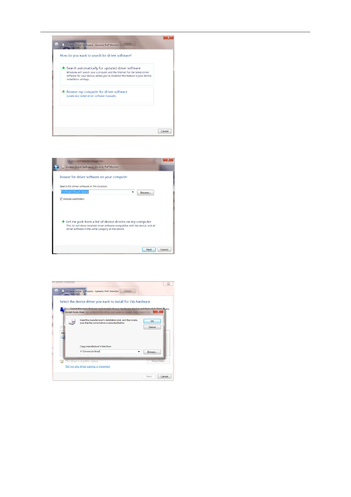 • Kies het model van de monitor en klik op de knop "Next (Volgende)". De bestanden worden van de cd naar