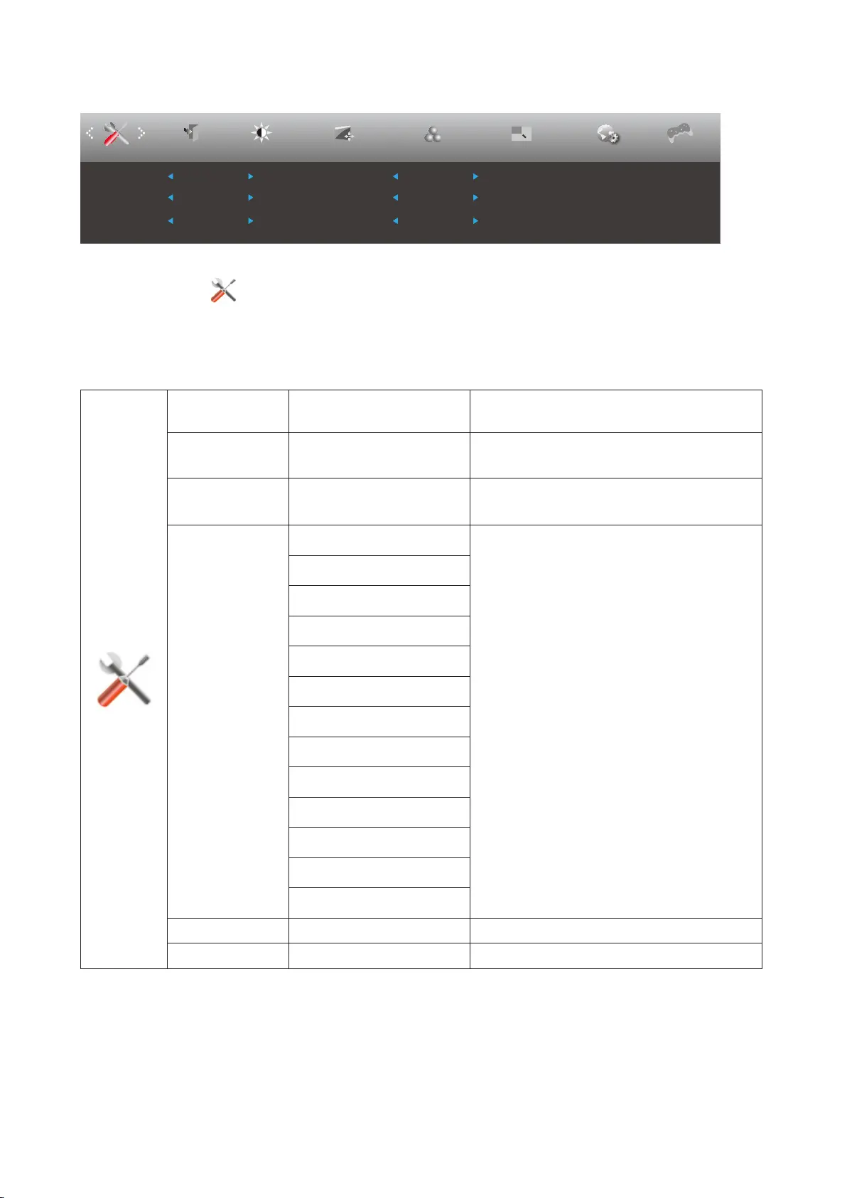 3. 按向左或向右选择子菜单,并按菜单按钮进入。