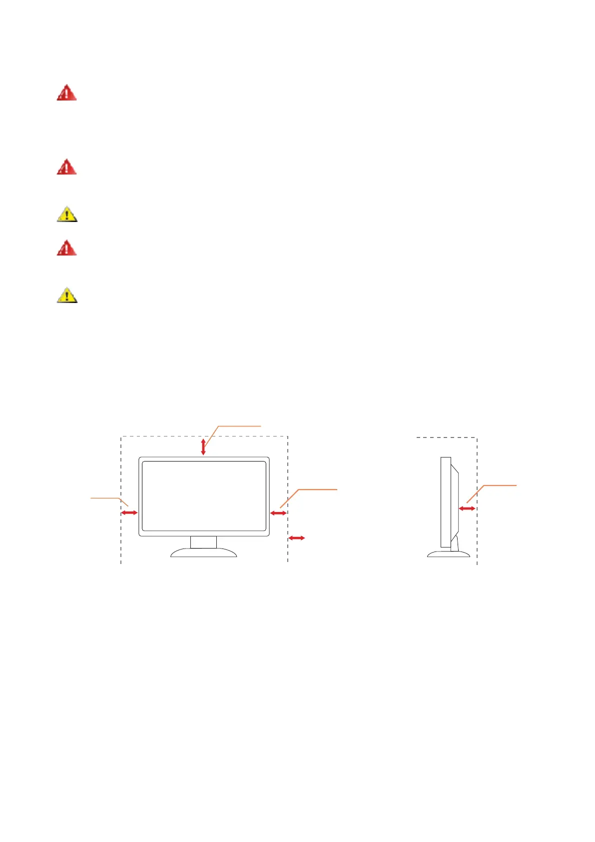 See below the recommended ventilation areas around the monitor when the monitor is installed on the wall or on the