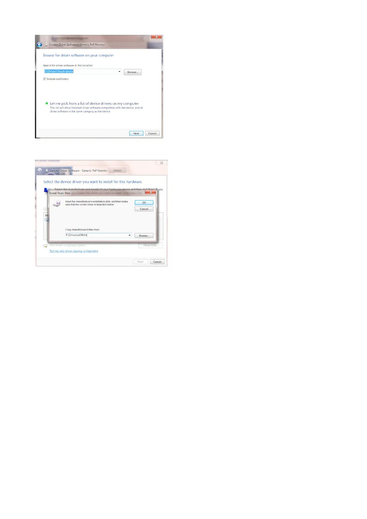 按一下「從磁碟」 按鈕。 按一下「瀏覽」按鈕,進入下一個目錄: