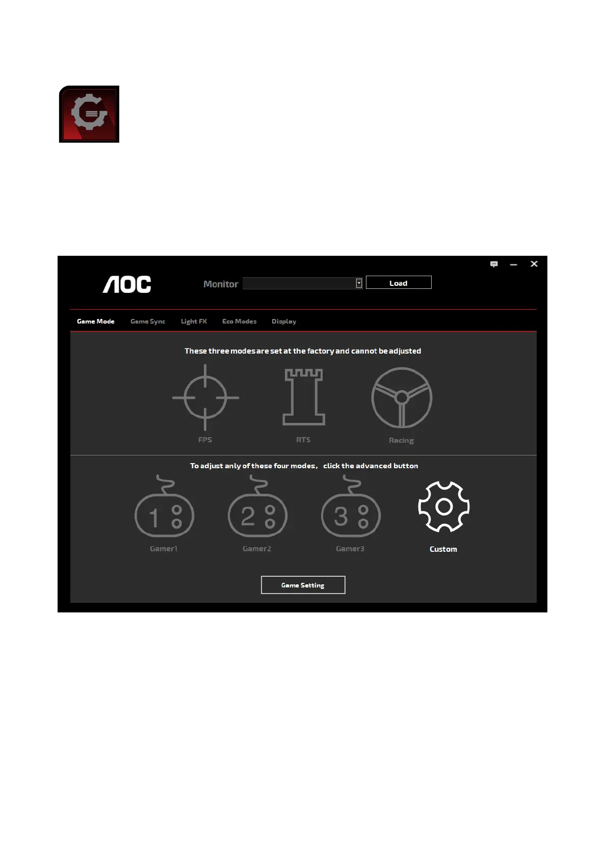 欢迎使用 AOCG-Menu软件。使用鼠标操作 G-Menu 软件,可快捷进行显示器游戏及显示参数调整,无需操作功能按钮。