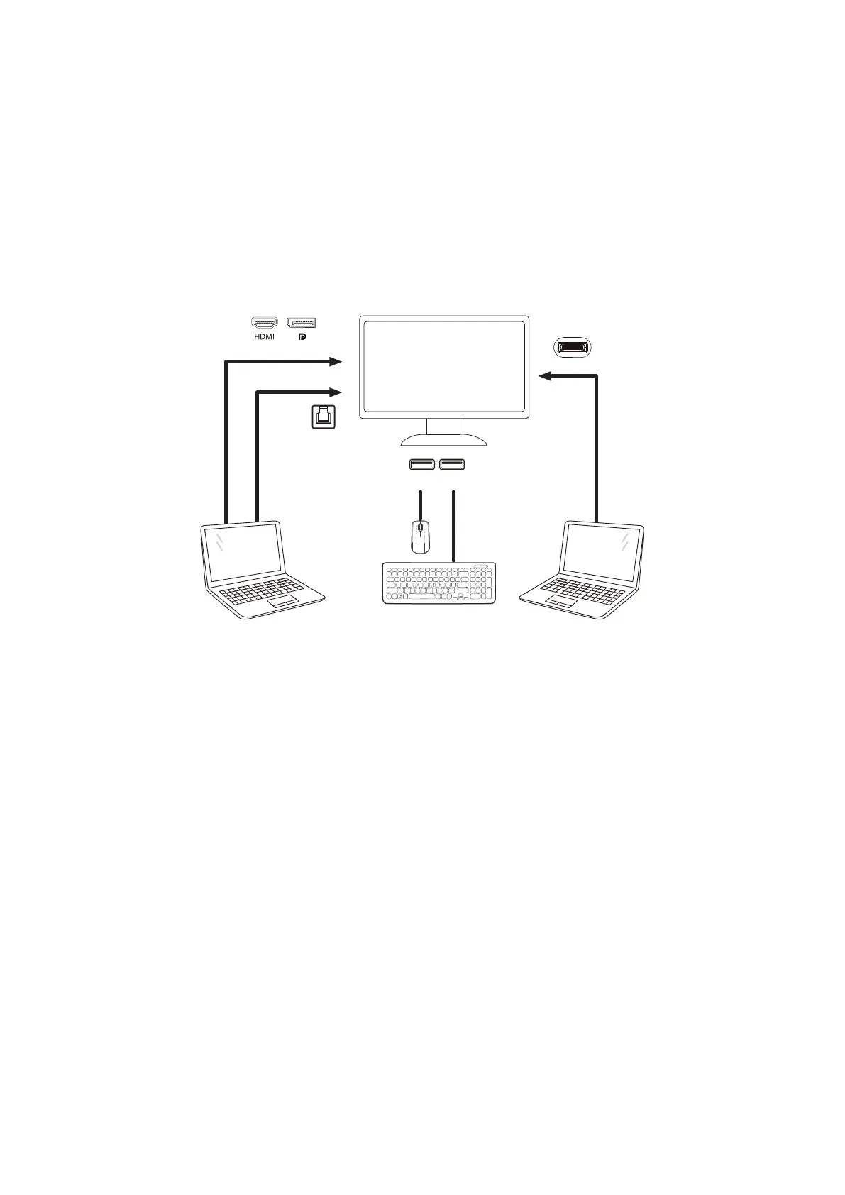 Step 1: Please connect one device (PC or notebook) to monitor via USB C.