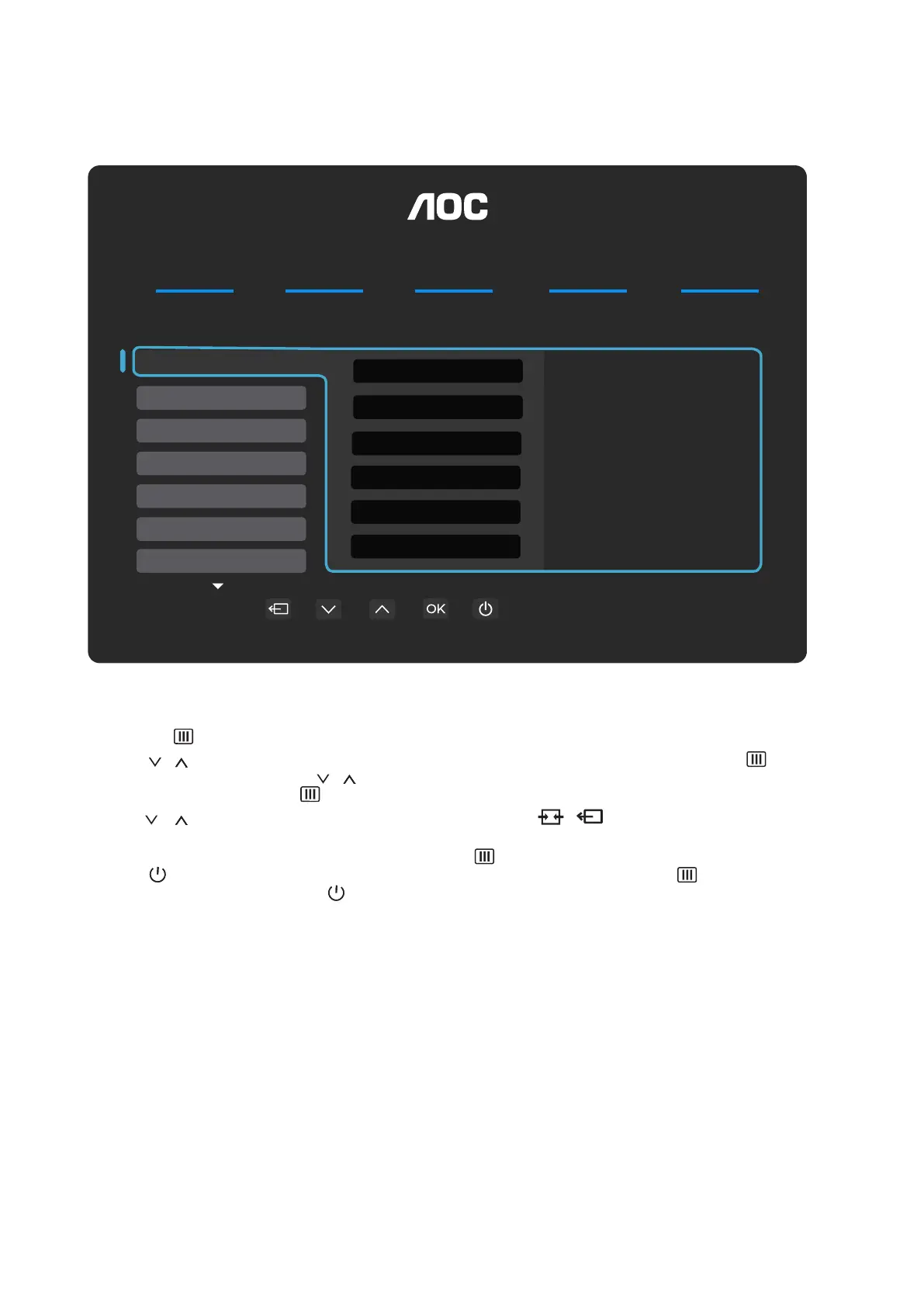 4). OSD Lock Function: To lock the OSD, press and hold the MENU-button while the monitor is o and then