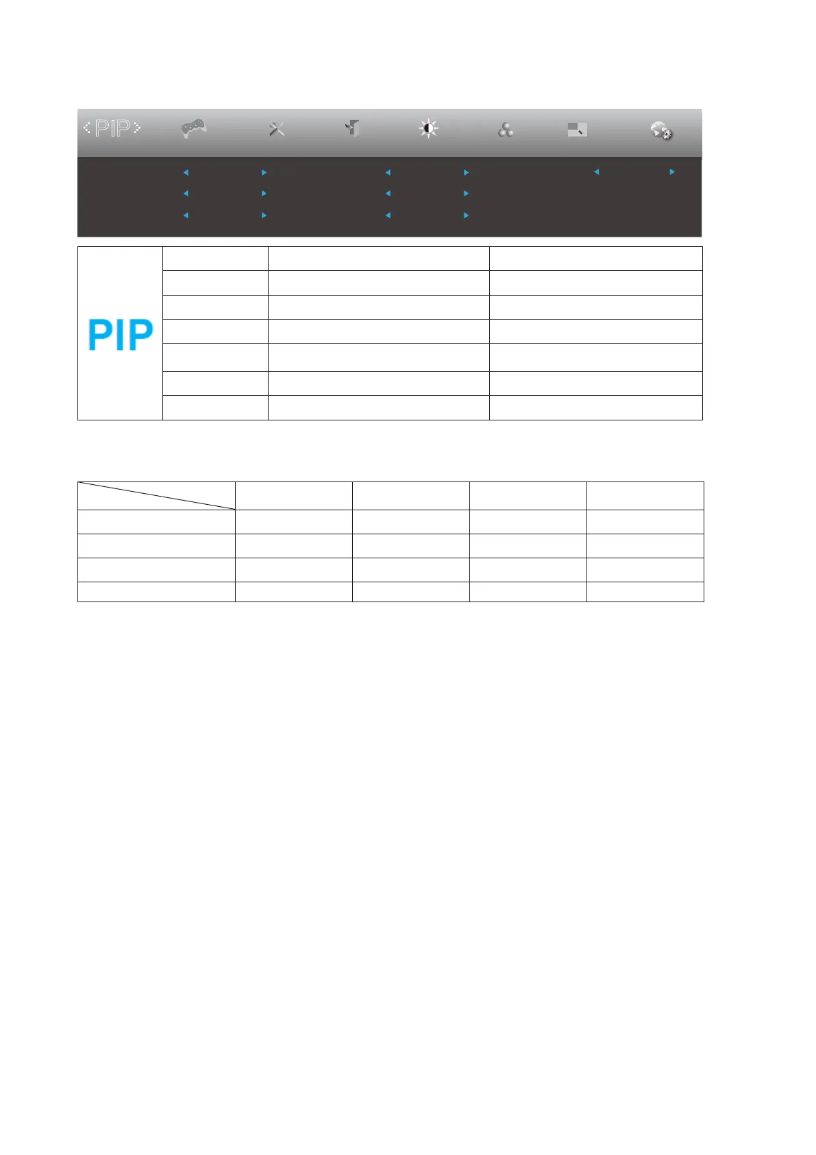 PIP Setting Off / PIP / PBP Disable or Enable PIP or PBP.