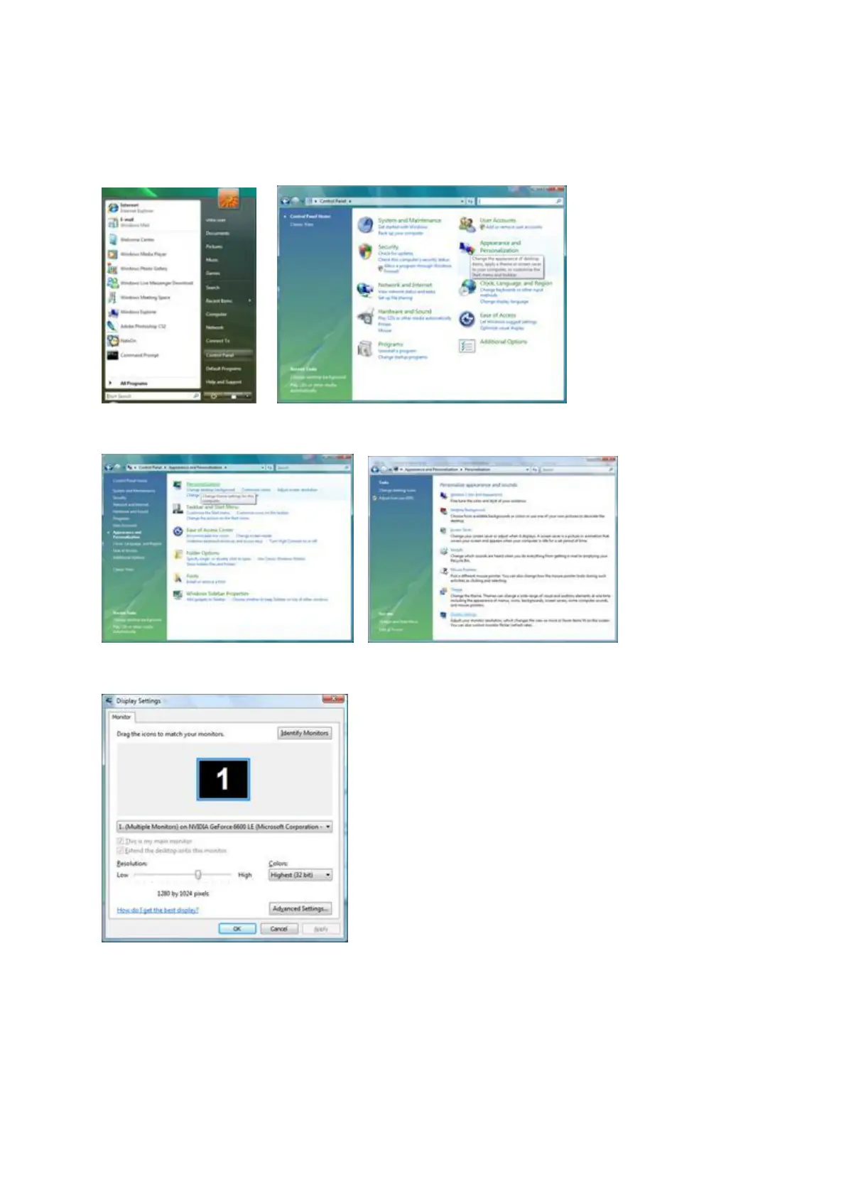 1. Click "Start " and "Control Panel". Then, double-click on "Appearance and Personalization".