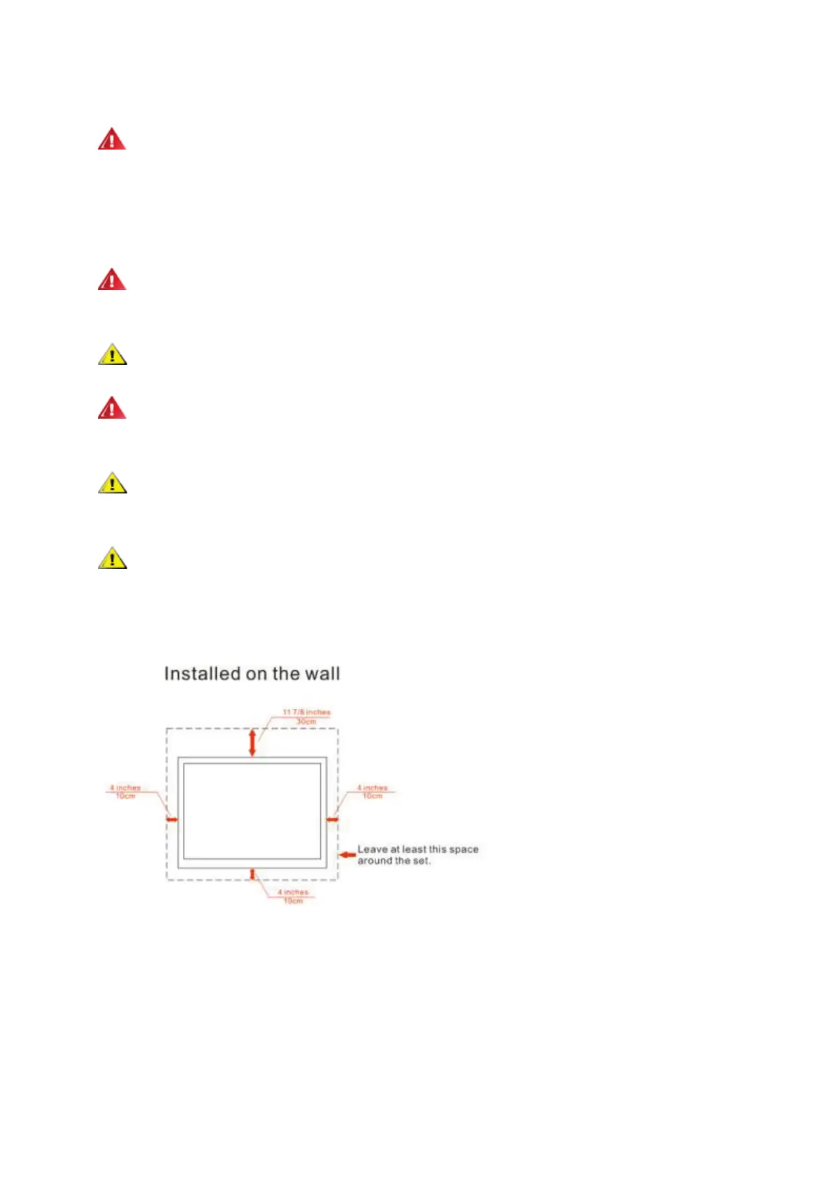 See below the recommended ventilation areas around the monitor when the monitor is installed on the wall or on