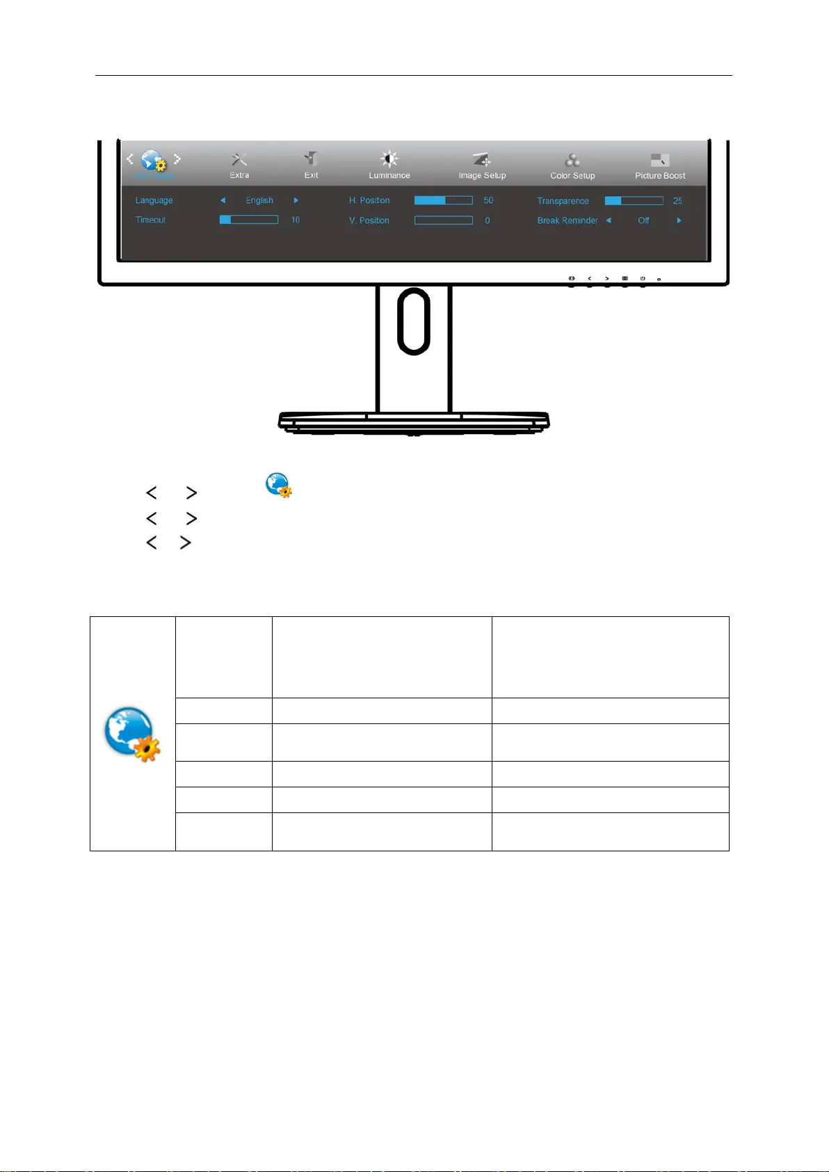 V. Position 0-100 Adjust the vertical position of the OSD.