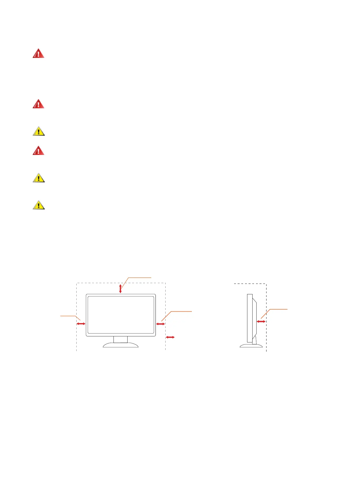 Leave some space around the monitor as shown below. Otherwise, air-circulation may be inadequate