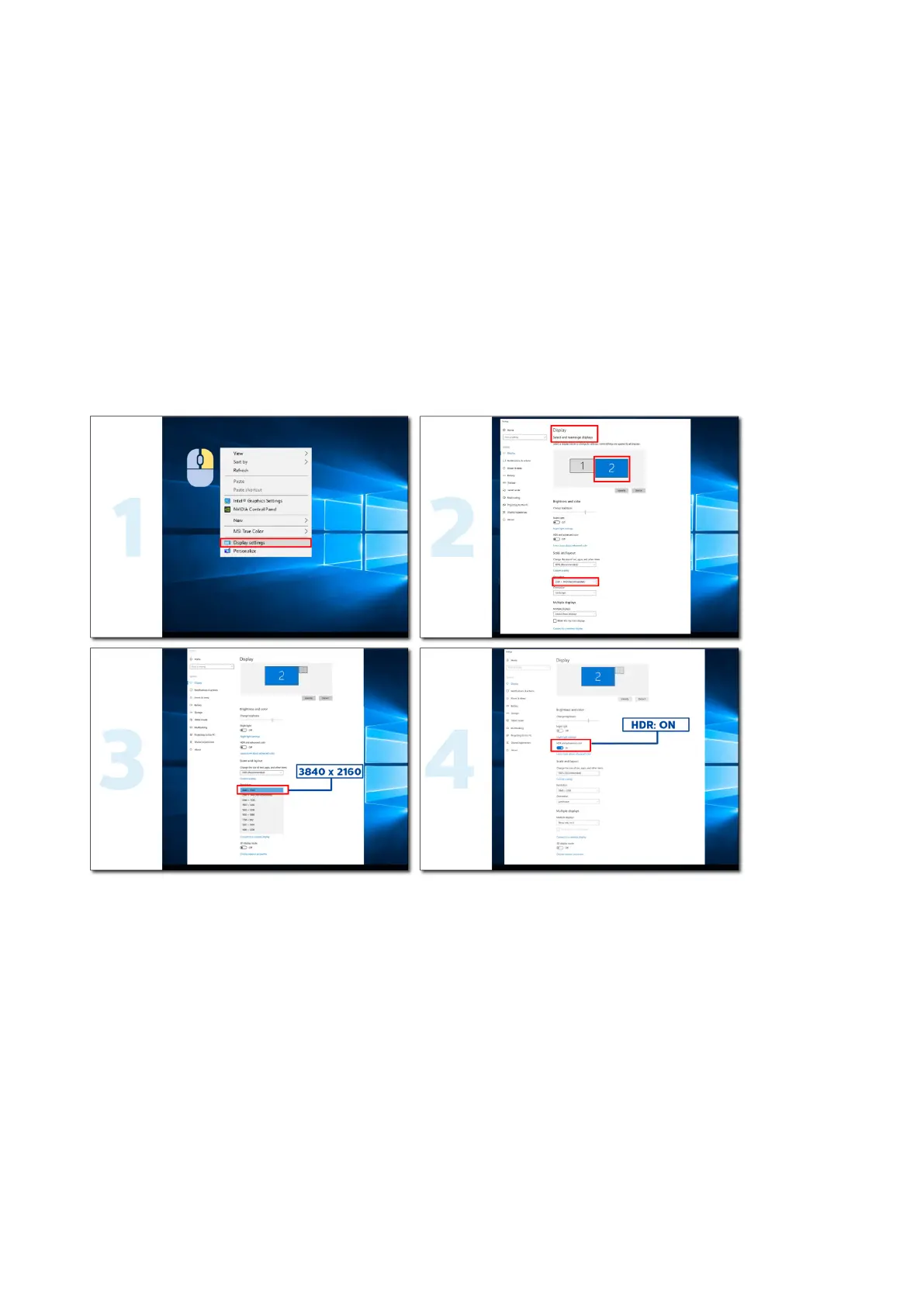a. The display resolution is set to 3840*2160, and HDR is preset to ON.