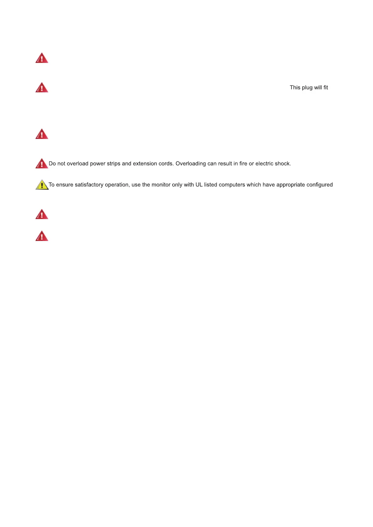 The monitor is equipped with a three-pronged grounded plug, a plug with a third (grounding) pin.