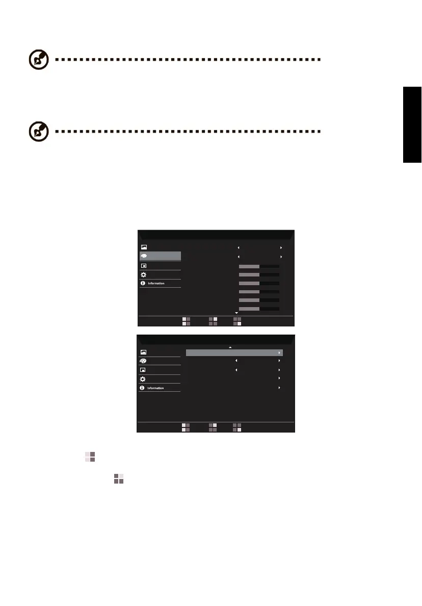 2. Gebruik de toetsen om de kleur te selecteren in het OSD. Navigeer vervolgens naar het