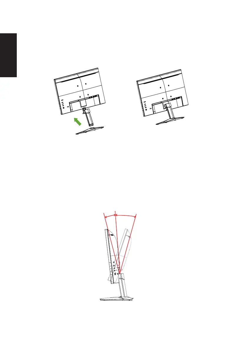 weergegeven. De monitor kan 15 graden omhoog of 5 graden omlaag worden aangepast.