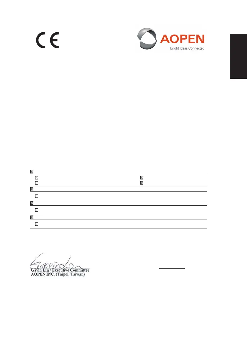 We, AOPEN INC., hereby declare under our sole responsibility that the product described above is in