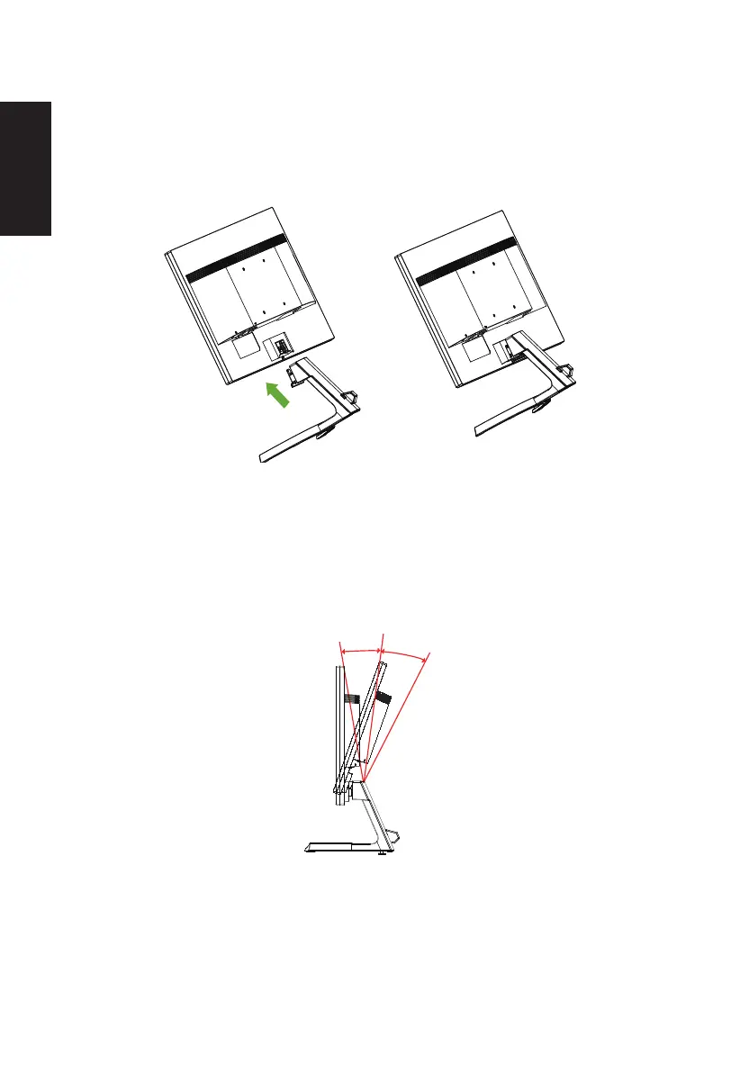 weergegeven. De monitor kan 15 graden omhoog of 5 graden omlaag worden aangepast.