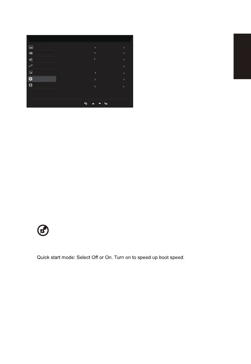 2. Press up or down button to select System from the OSD. Then press enter button to