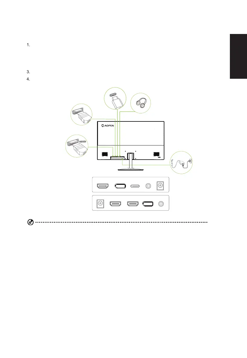 van de monitor, en de HDMI (optioneel) en/of DP (optioneel) en/of Type-C (optioneel) uitgangsaansluiting van de