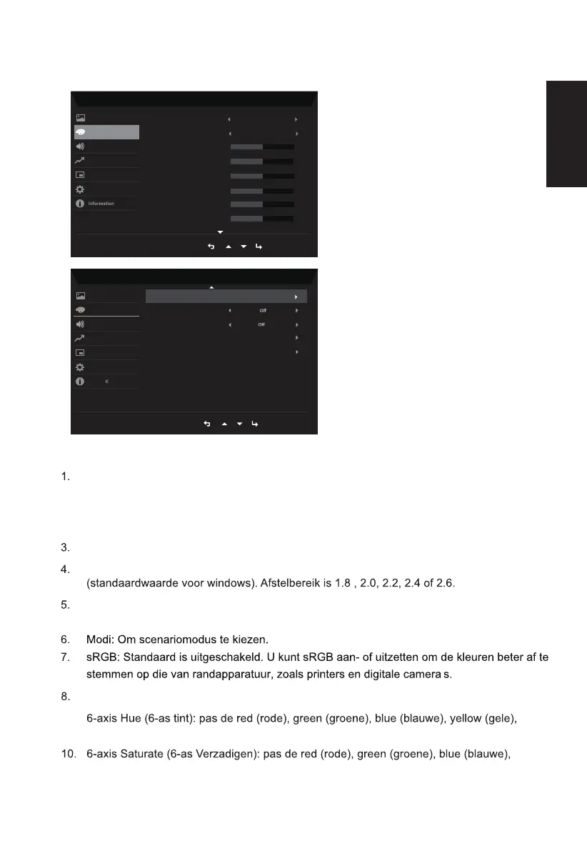 Met Gamma kunt u de helderheidstint aanpassen. De standaardwaarde is 2.2