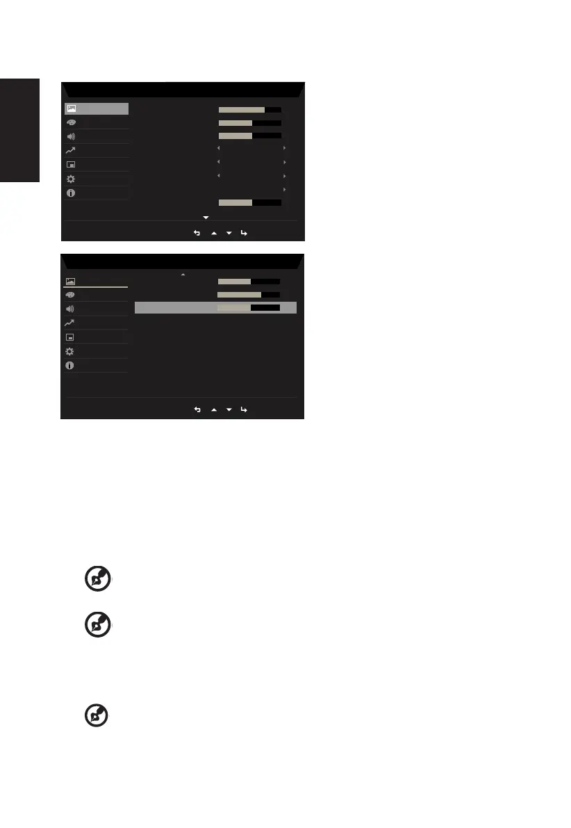 4. Het menu Picture (Beeld) kan worden gebruikt voor het aanpassen van Brightness