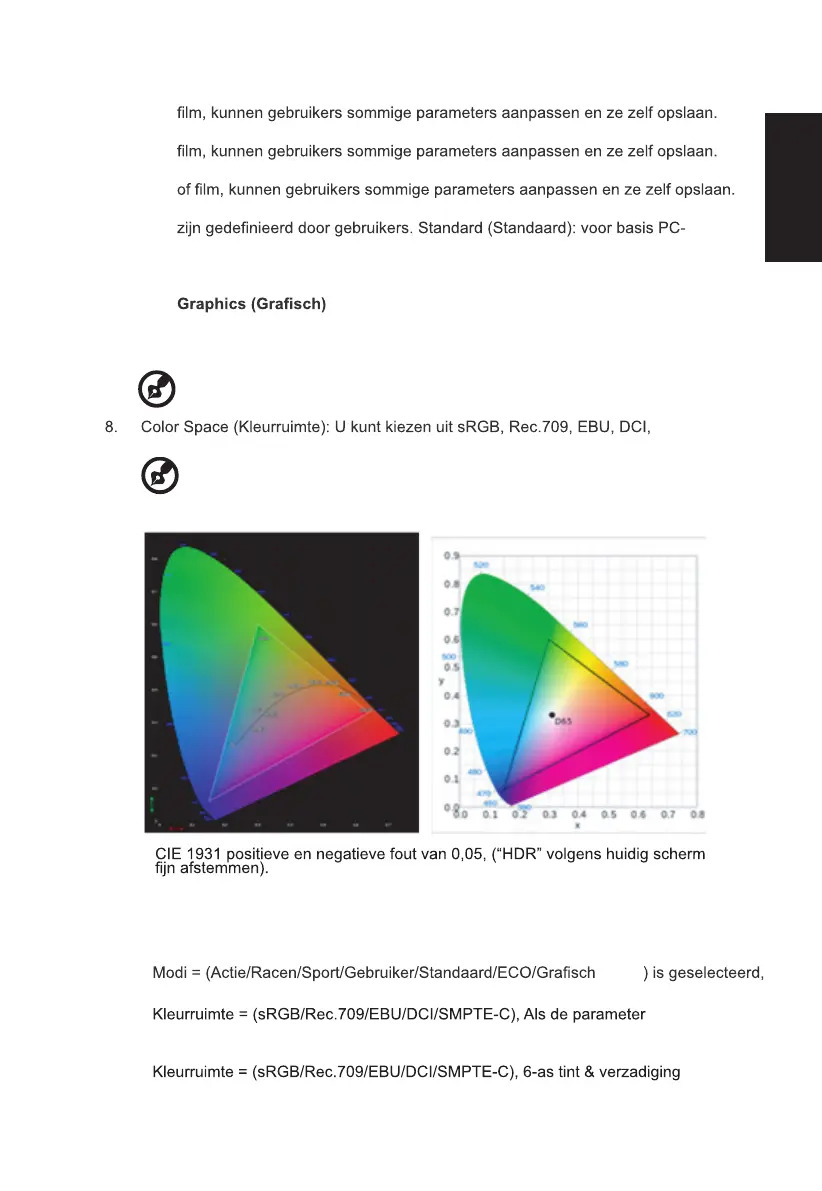 Opmerking: Color Space (Kleurruimte) = HDR komt overeen met Modi is HDR,