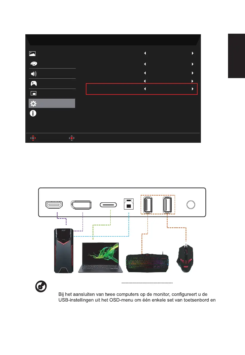 U kunt de onderstaande instructie volgen voor het instellen van KVM voor uw monitor: