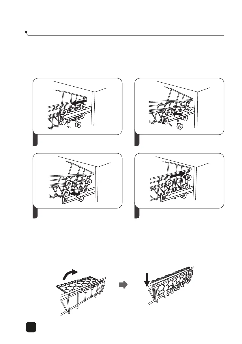 To make room for taller items in the upper basket, raise the cup rack upwards.