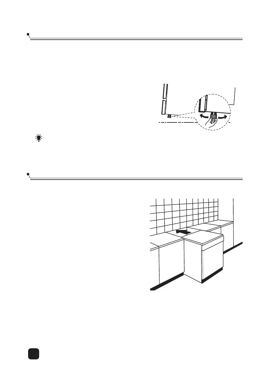 behind it, and the sides, along the adjacent cabinets or walls. The dishwasher is