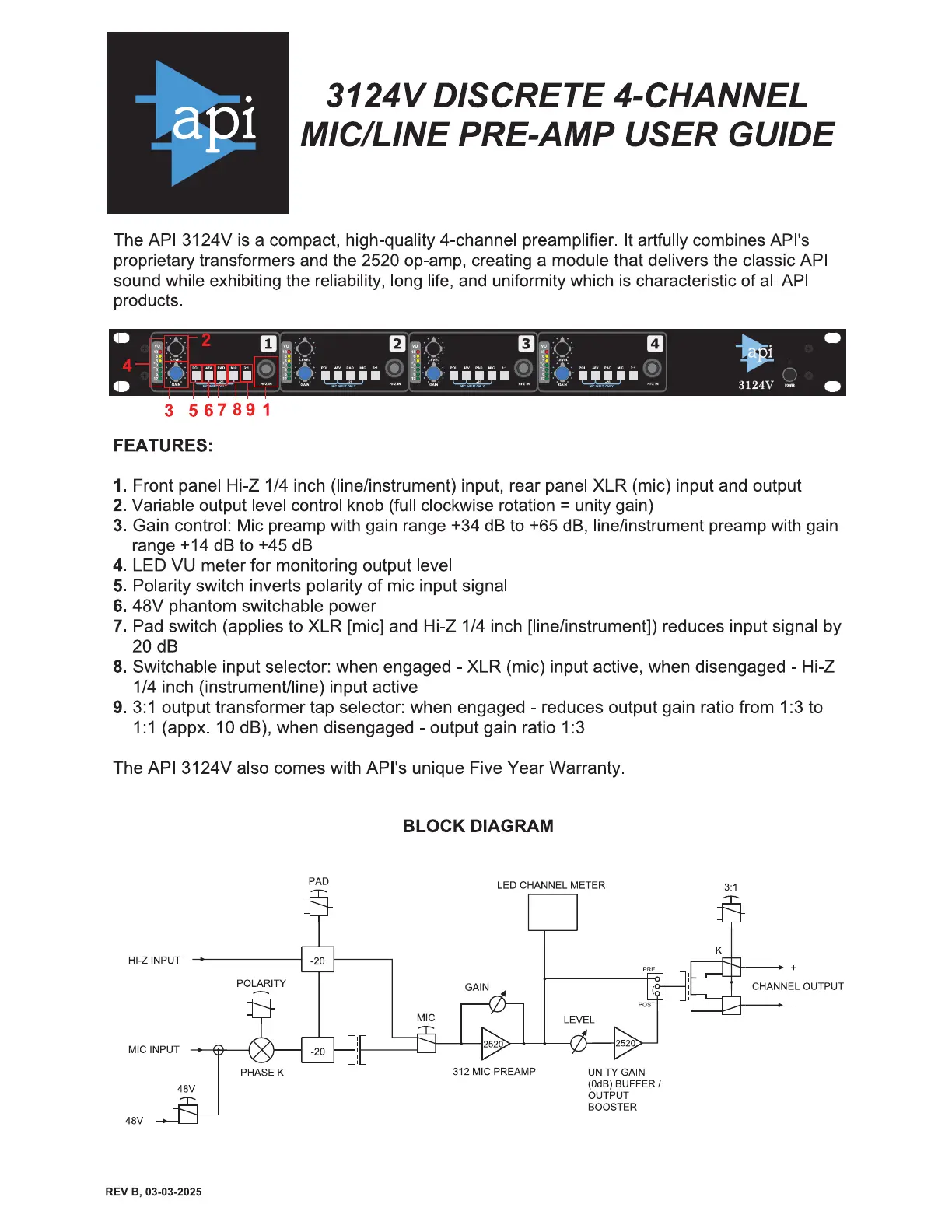 Bekijk gratis de handleiding van API Audio 3124V, stel vragen en lees de antwoorden op veelvoorkomende problemen, of gebruik onze assistent om sneller informatie in de handleiding te vinden of uitleg te krijgen over specifieke functies.