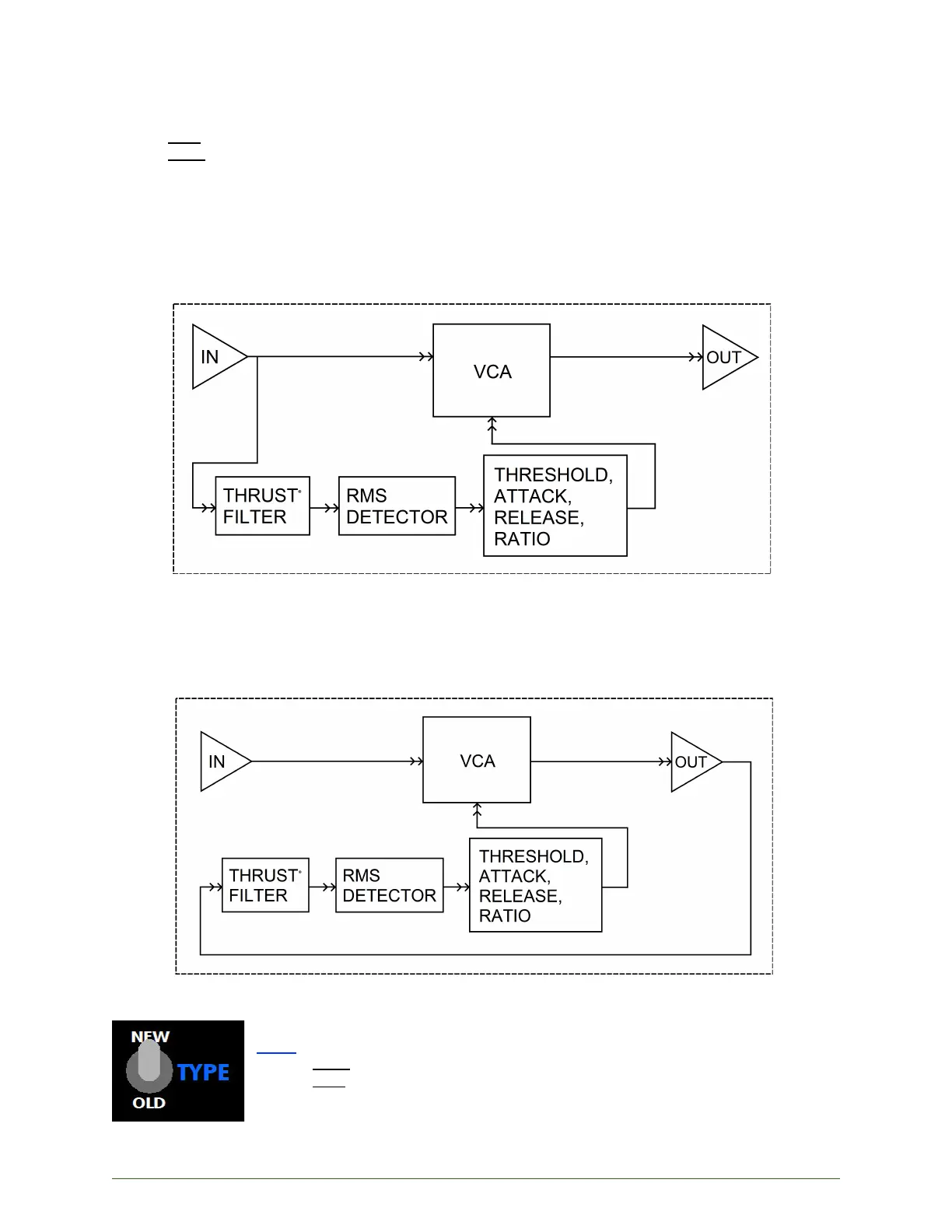 • NEW: Feed-Forward topology: The RMS detector receives the signal from before the VCA