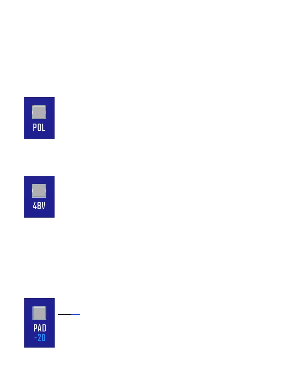 PAD -20: Toggle to apply 20dB of attenuation to the input signal