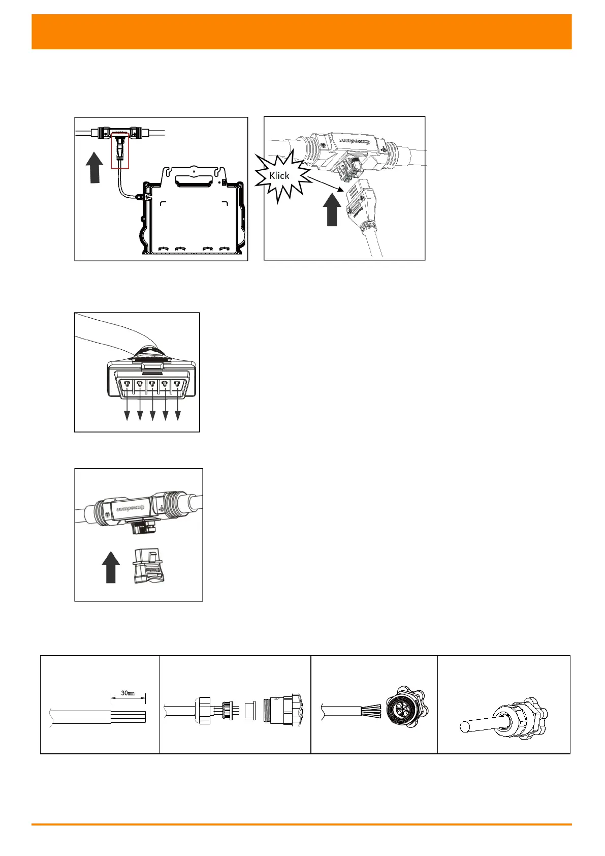 Steek de AC-connector van de micro-omvormer in de connector van de hoofdkabel. Let op de hoorbare klik,