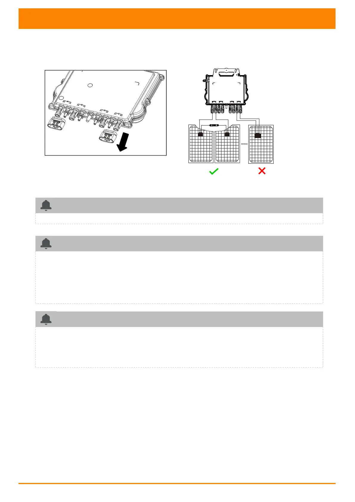 Elk kanaal verbindt 2 PV-modules in serie (voor PV-modules met Voc<60V). Het ingangskanaal werkt niet