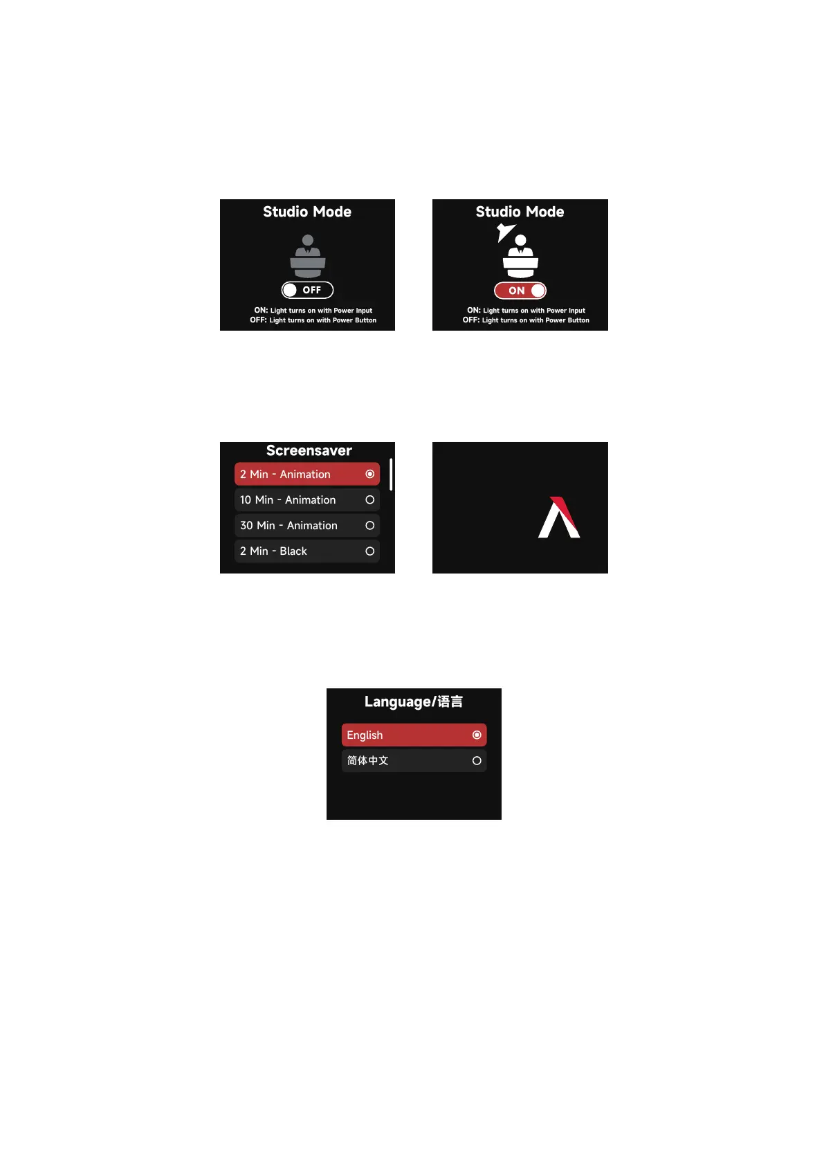 When Studio Mode is enabled (ON), the fixture will power on when connected to live power.