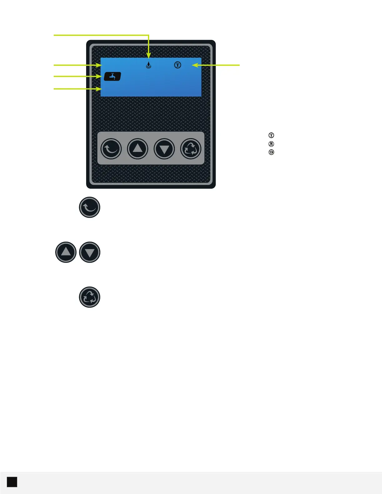 2.  When power is supplied to the control, the screen will display the time of day, gallons