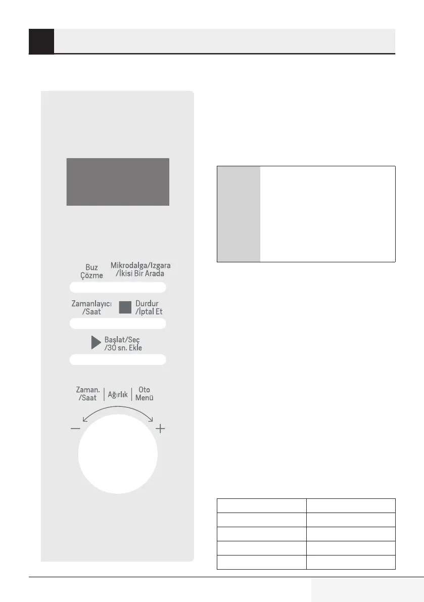 6. Press “Başlat/Seç/30 sn. Ekle” to start cooking.